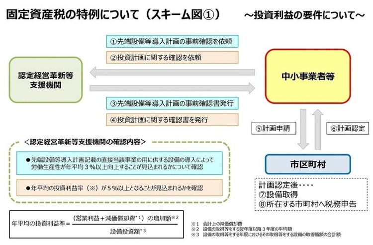認定を受けることで、固定資産税(償却資産)の特例措置や金融支援を受けることができます。