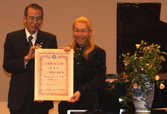 華道と音楽の素晴らしい融合に立ち会えたことに感謝しまして、これを機に、住民の方々をはじめ世界から上五島の椿がいつくしみ愛されることを願います。