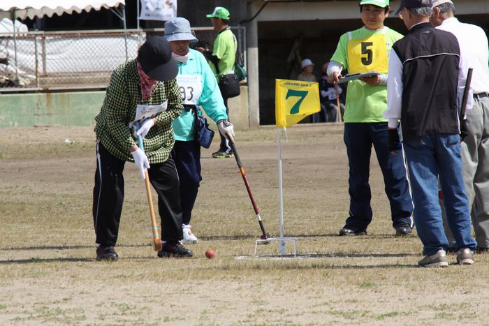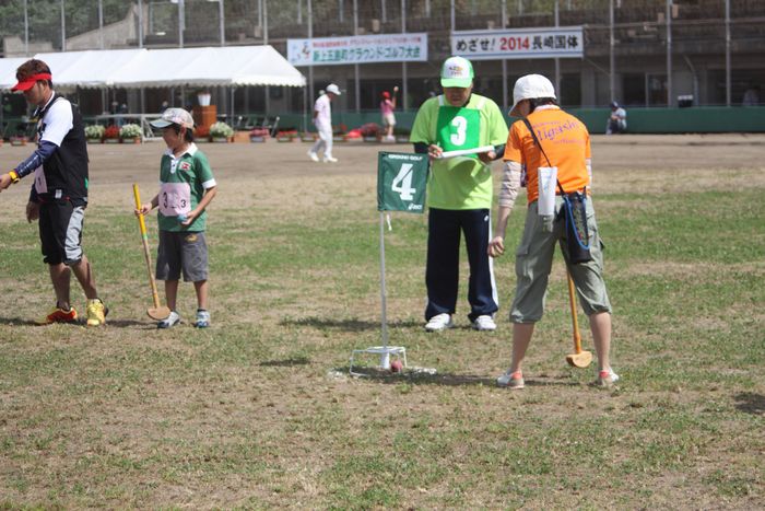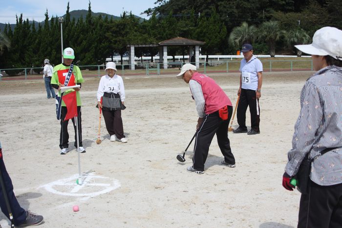 平成26年9月14日 日曜日 さわやかな秋晴れの下、第69回国民体育大会デモンストレーションとしてのスポーツ行事「グラウンド・ゴルフ大会」が有川運動公園において開催されました。一般の部・高齢者の部・ファミリーの部の3部門に、町内外から330名の選手の参加を得て、幼稚園児から高齢者の方まで同じ競技で競い合い、一緒に汗を流し、好プレー・珍プレーに、喜び、笑い、和やかな中にも国民体育大会の本大会に負けないくらいの熱戦が繰り広げられました。各方面から、大勢のボランティアスタッフの方々の協力を得て、無事に終了することができました。皆様方、本当にありがとうございました。 結果は以下のとおりです。