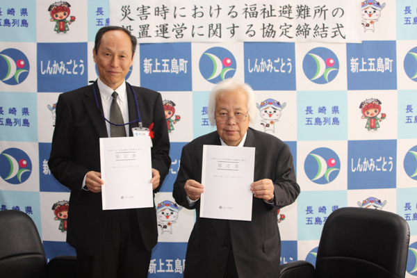 町では、大規模災害時において、通常の避難所では生活に支障をきたす高齢者や障害者等の要配慮者が安心して避難生活を送ることができるように、平成26年8月27日に、町内の老人ホームや老人保健施設を運営される社会福祉法人との間で「災害時における福祉避難所の設置運営に関する協定」を締結していますが、新たに障害者を主として受け入れをお願いするために、平成27年11月20日に障害者支援施設と協定の締結を行いました。