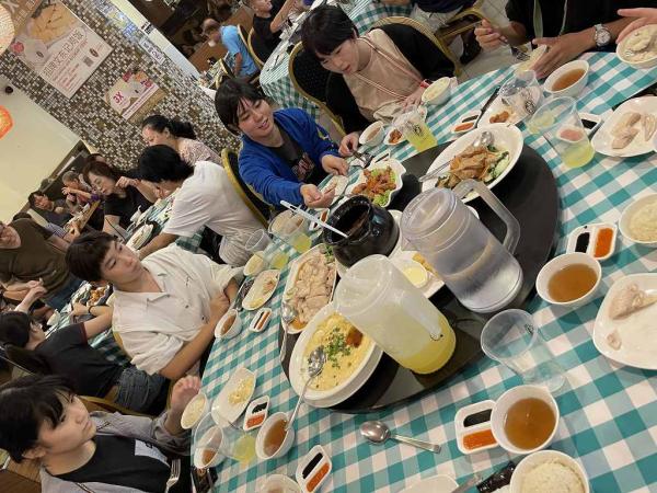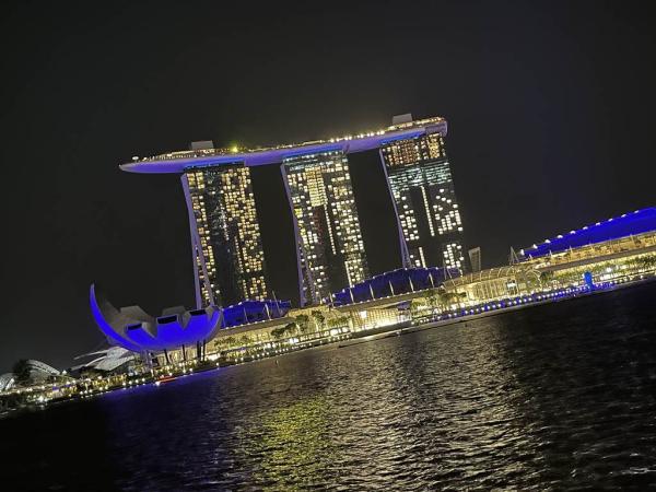 福岡市に前泊した次の日に福岡空港からシンガポールへ飛び立ちました。到着後、シンガポールを代表する料理「チキンライス」をいただきました。 またその夜には、マリーナ・ベイ地区でナイトショーを見学しました。シンガポールの美しい夜景を眺め、異国でのひとときを満喫しました。